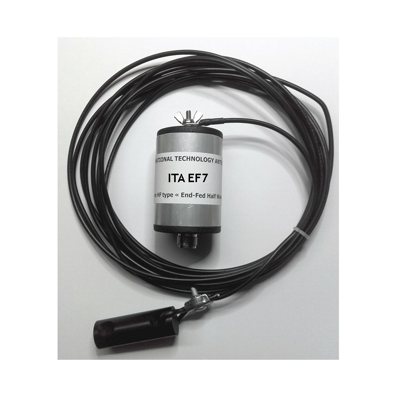 L'antenne EF7 est une filaire monobande 7 MHz, 1/2 onde, conçue particulièrement pour un usage en portable (week-ends radio, expéditions, etc.). Elle possède une large bande passante, sa puissance admissible est de 300 W PEP et elle est réalisée dans un robuste corps en aluminium ne craignant pas les chocs. Sa conception limite le bruit de fond et son rendement est étonnant.