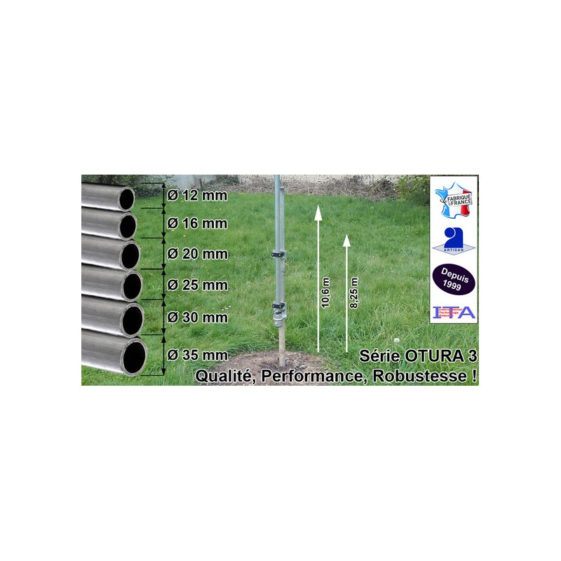 Antenne "large bande" HF constituée d'un fouet vertical de 10,6 m couplé à un unun de rapport 1:4. La OTURA 3-10 HP fonctionne sans trappe (qui limitent la bande passante) ni radian. Elle peut être transformée en un 1/4 d'onde sur 7 MHz (radians à ajouter) ! Facilement et rapidement installée, la OTURA 3-10 HP vous comblera par ses performances et sa robustesse !